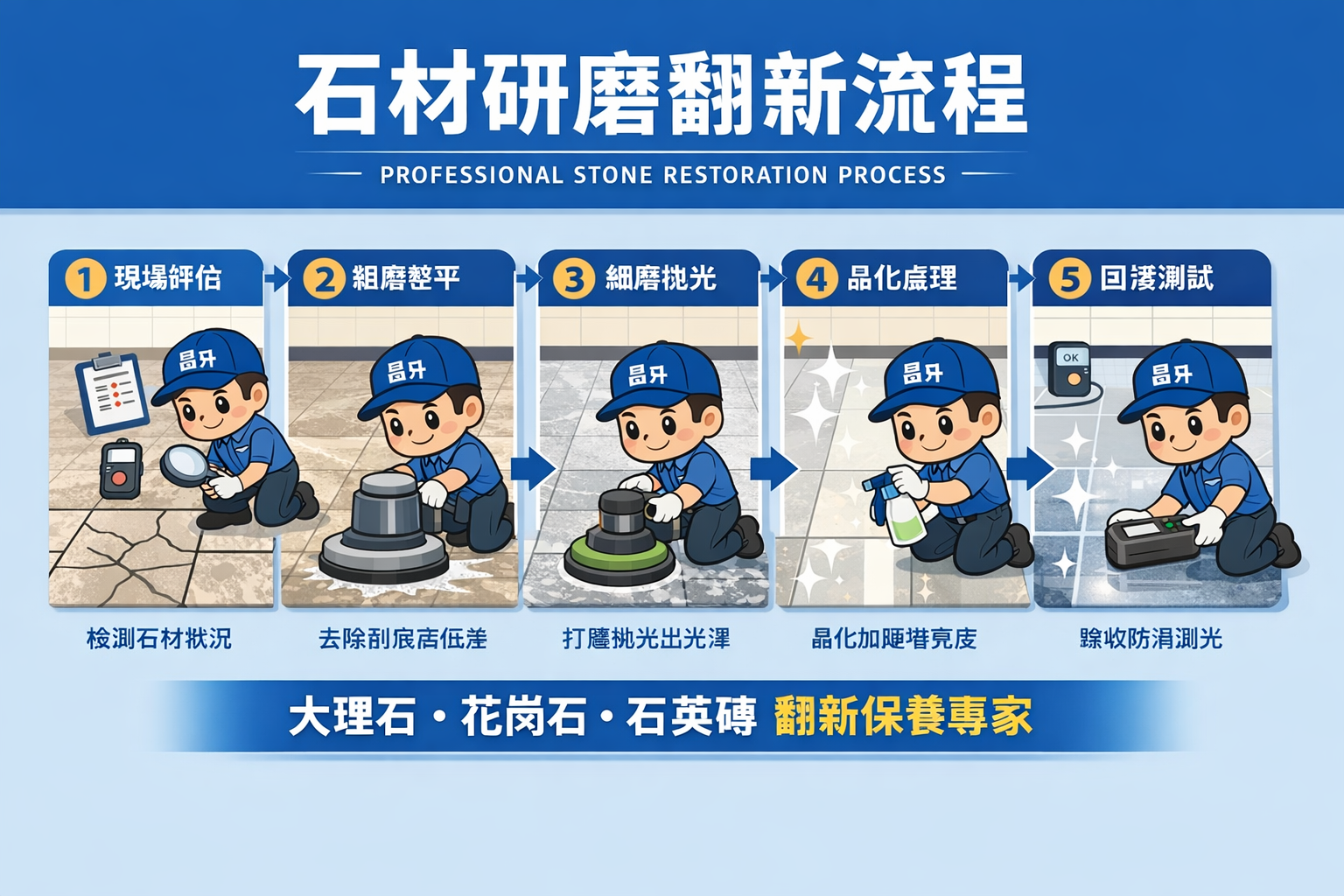 五股工業區石材保養晶化研磨翻新專業服務|昌升清潔
